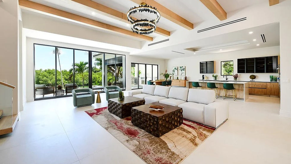 This is the first of two waterfront spec homes we designed with a developer to sell. With a mix of white oak finishes, tropical inspired tiles and a light color palette the home is both elegant and inviting.
